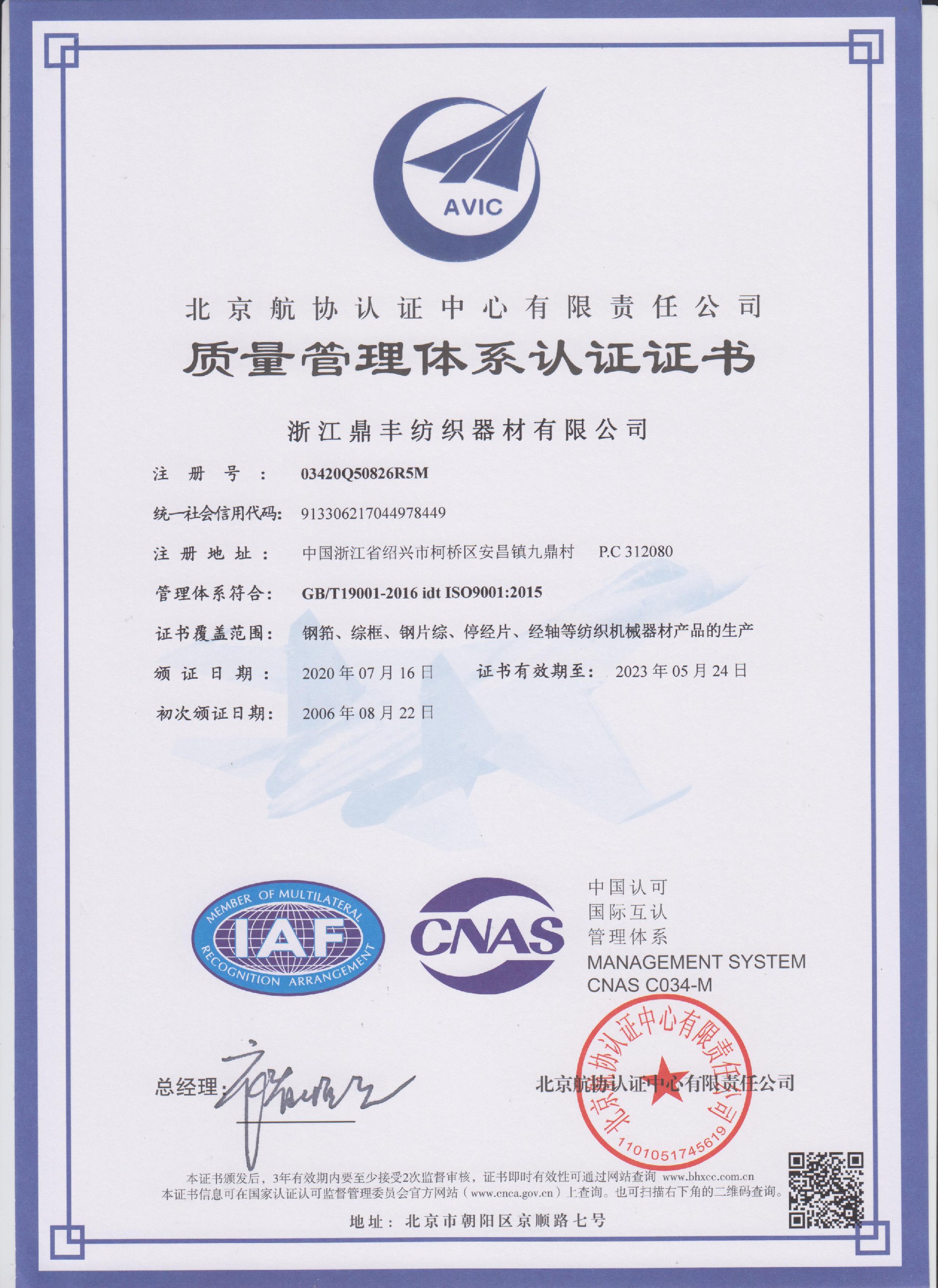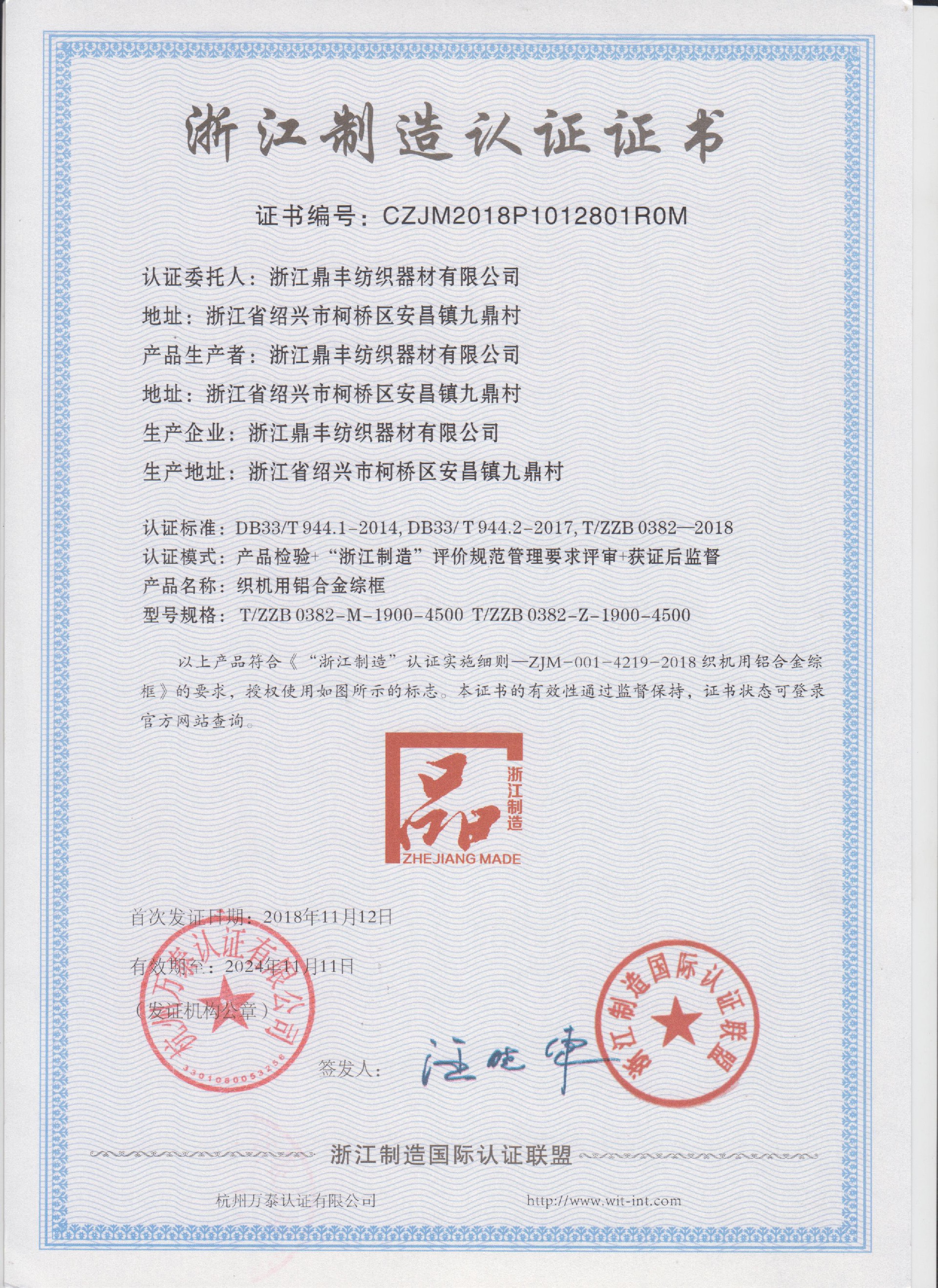 1、貴公司是一家專業(yè)生產(chǎn)各類無梭織機鋁合金鋼筘、綜框、鋼片綜、停經(jīng)片、經(jīng)軸、織軸和卷布輥等產(chǎn)品及配件的民營企業(yè)。公司成立30多年迅速發(fā)展、占領市場的秘決是什么?余定雅:是高品質(zhì)的產(chǎn)品,完善的售后服務和大規(guī)模的生產(chǎn)能力保證了浙江鼎豐紡織器材有限公司的產(chǎn)品銷售量在國內(nèi)獨占鰲頭。為了與全球市場經(jīng)濟接軌,鼎豐紡